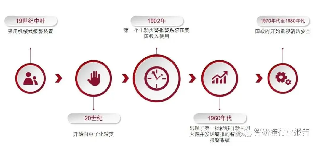 早期的火灾报警系统起源于19世纪中叶,主要采用机械报警装置,如手动绳索报警器和电铃报警系统。 这些设备依赖手动操作,响应速度和覆盖范围有限。 20世纪,随着电子技术的进步,火灾报警装置开始向电子化转变。 1902年,第一套电气火灾报警系统在美国投入使用,标志着该行业进入了新的发展阶段。 第二次世界大战后,计算机技术和传感器技术的迅速发展促进了火灾报警装置的智能化。 20世纪60年代,第一批智能火灾报警系统出现,可以自动检测火源并发出警报。 20世纪70年代至80年代,世界各国政府开始关注消防安全,并出台相关法规和标准来规范火灾报警装置的设计、生产和安装。 例如,美国在20世纪70年代实施了美国国家消防协会(NFPA)标准,对火灾报警装置的性能和安全性提出了明确的要求。 进入21世纪,火灾报警装置行业不断向更加现代化、网络化的方向发展。 现代火灾报警系统不仅具有高精度的火源探测能力,还可以通过互联网等通信技术实现远程监控和预警。 此外,物联网(IoT)、人工智能(AI)等先进技术的应用,让火灾报警设备在预测和应对火灾风险方面发挥更高效的作用。